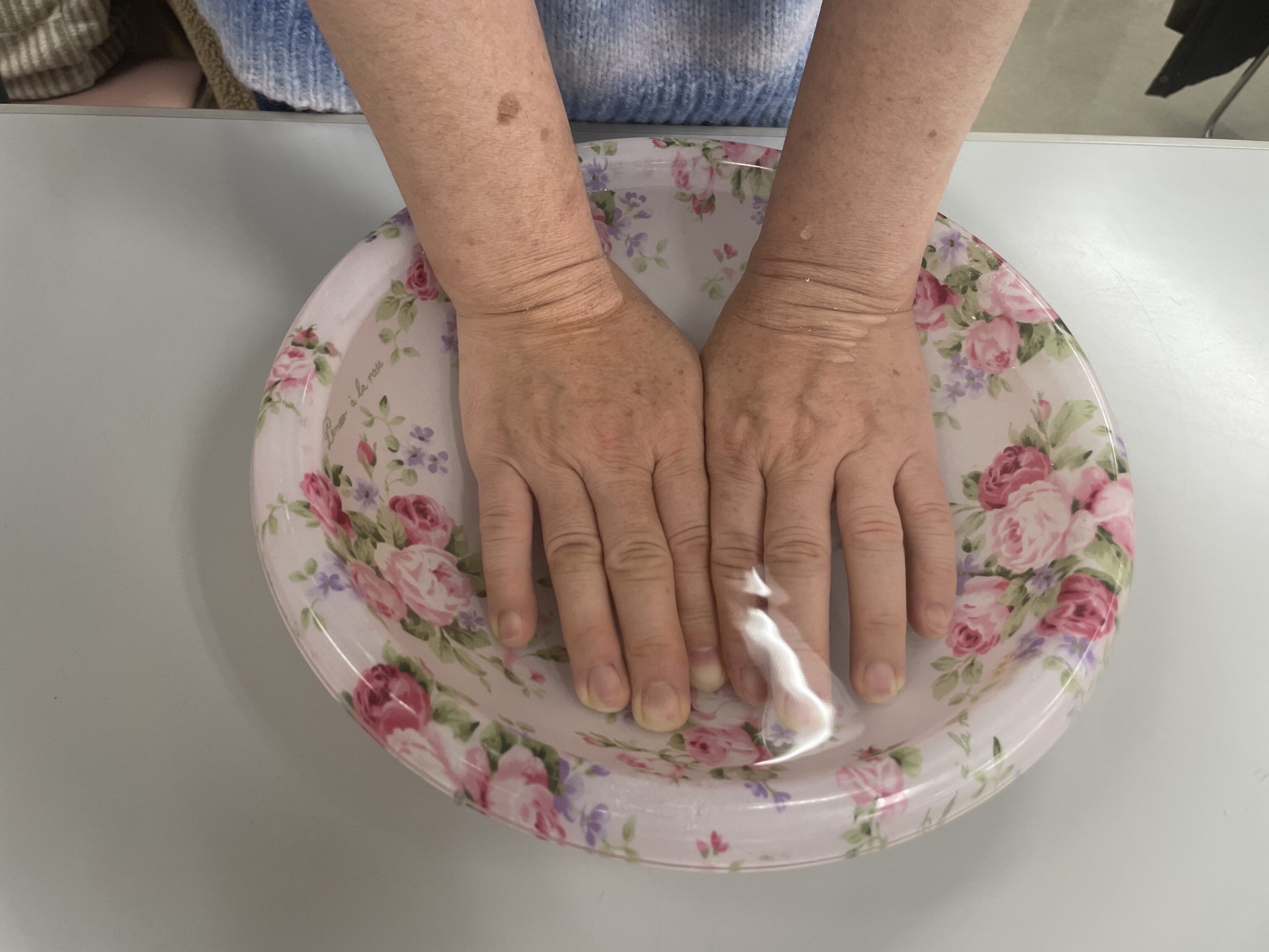 アロマの手浴をしていただいて