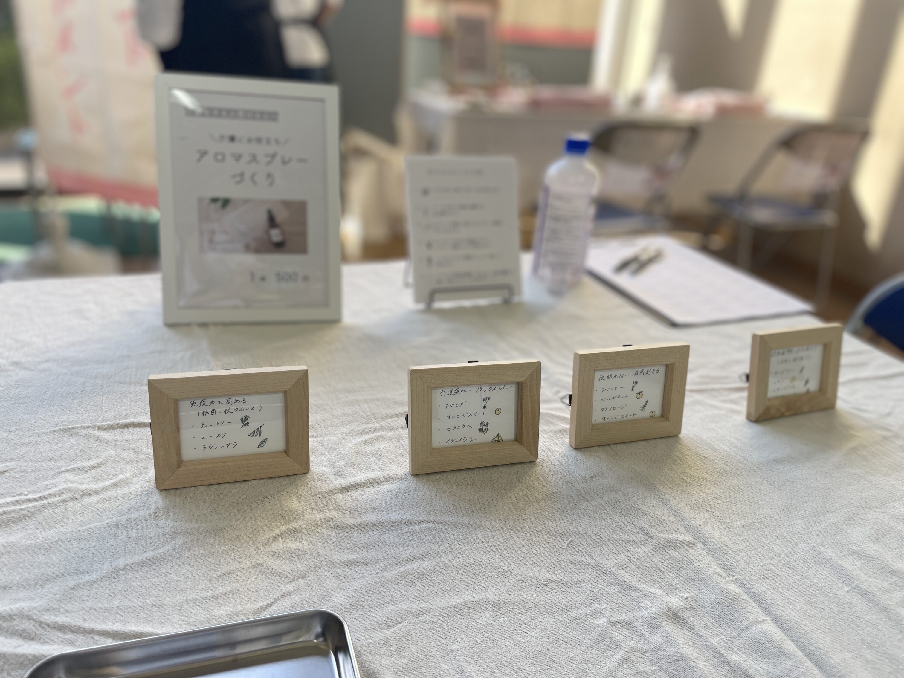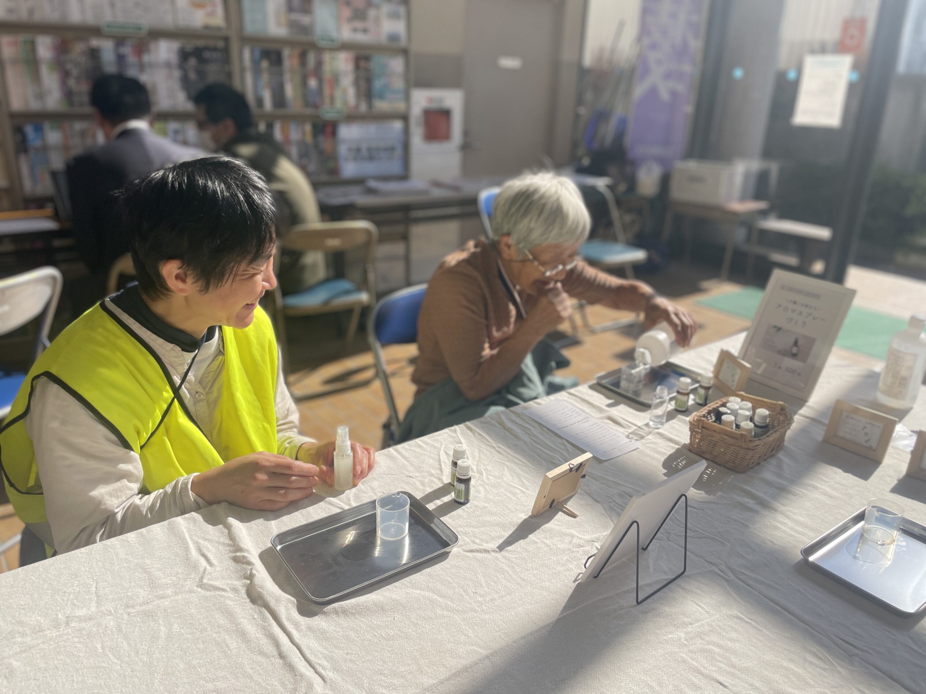▲この日は、介護に役立つアロマスプレー作りも。